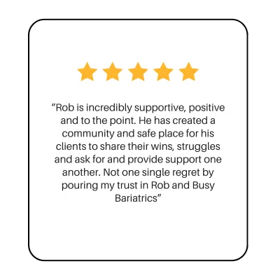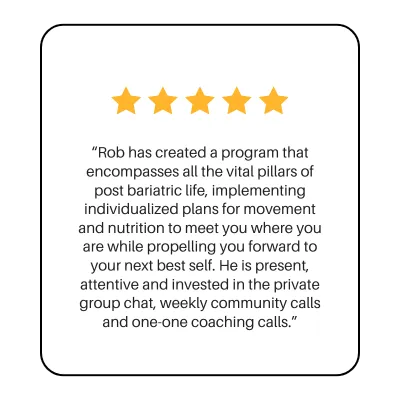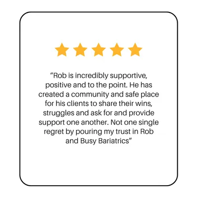 Now, as the CEO and head coach of Busy Bariatrics, Rob brings deep expertise, lived experience, and a no BS approach to helping bariatric patients burn fat, build muscle, and create results that actually last a lifetime. His method isn’t just informed by science, it’s driven by empathy, backed by data, and built to meet you where you are.